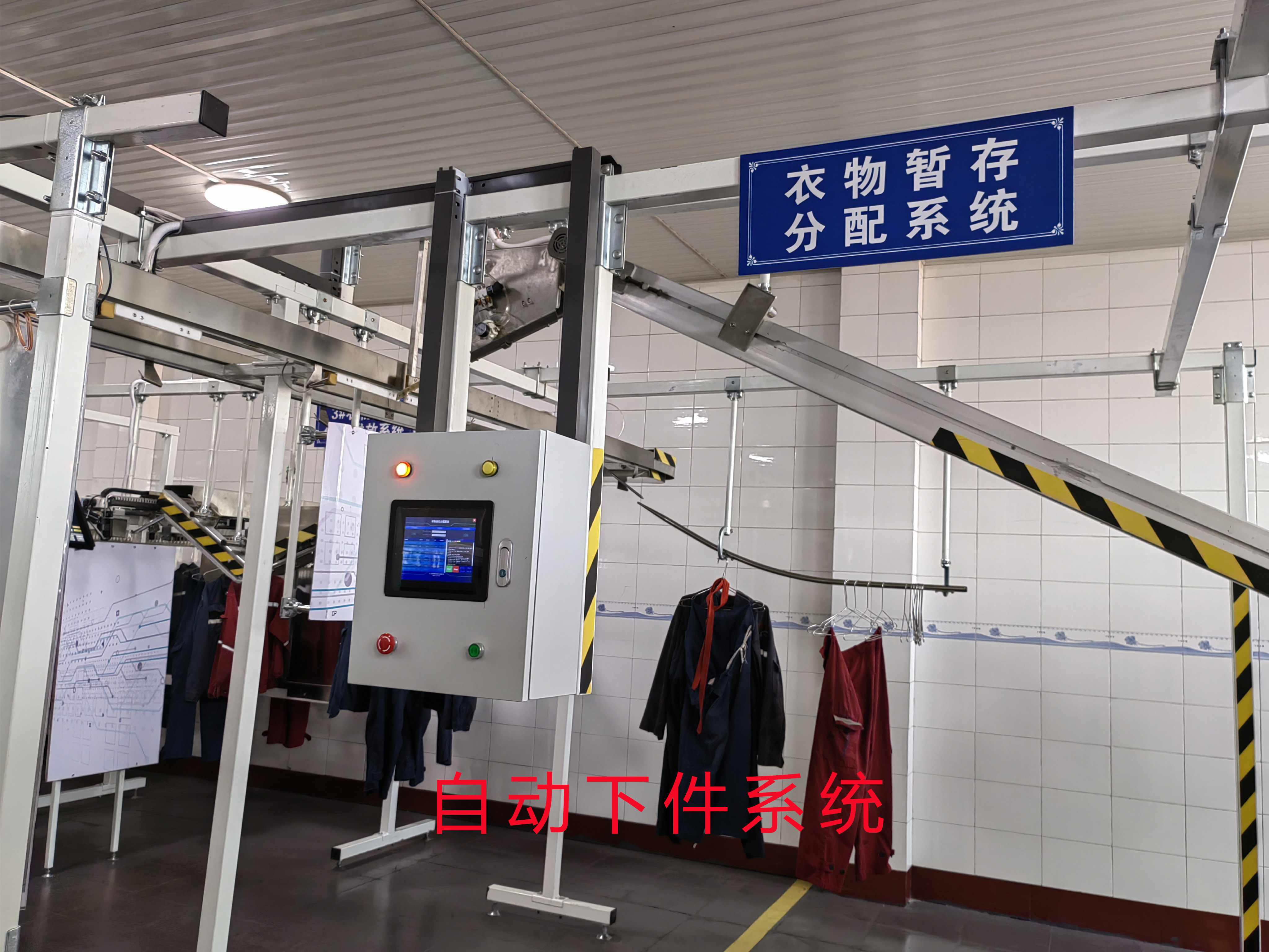 系統(tǒng)由臟衣投放口、傾斜式洗衣機、節(jié)能型衣服連續(xù)烘干機、一次分揀線、儲衣發(fā)放線、取衣口六部分組成。在衣物里植入芯片,工人取衣時,刷臉即可取衣。全過程自動化、智能化運行,數(shù)字化管理。只需1-2人操作,每班洗衣量700件-2500件。與現(xiàn)有同類設(shè)備比較,可節(jié)約電能50%,節(jié)省人工50%。